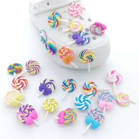 Bán buôn dễ thương flatback nhựa giày trang trí thực phẩm đầy màu sắc chơi kem Lollipop quyến rũ phụ kiện cho Guốc Giày